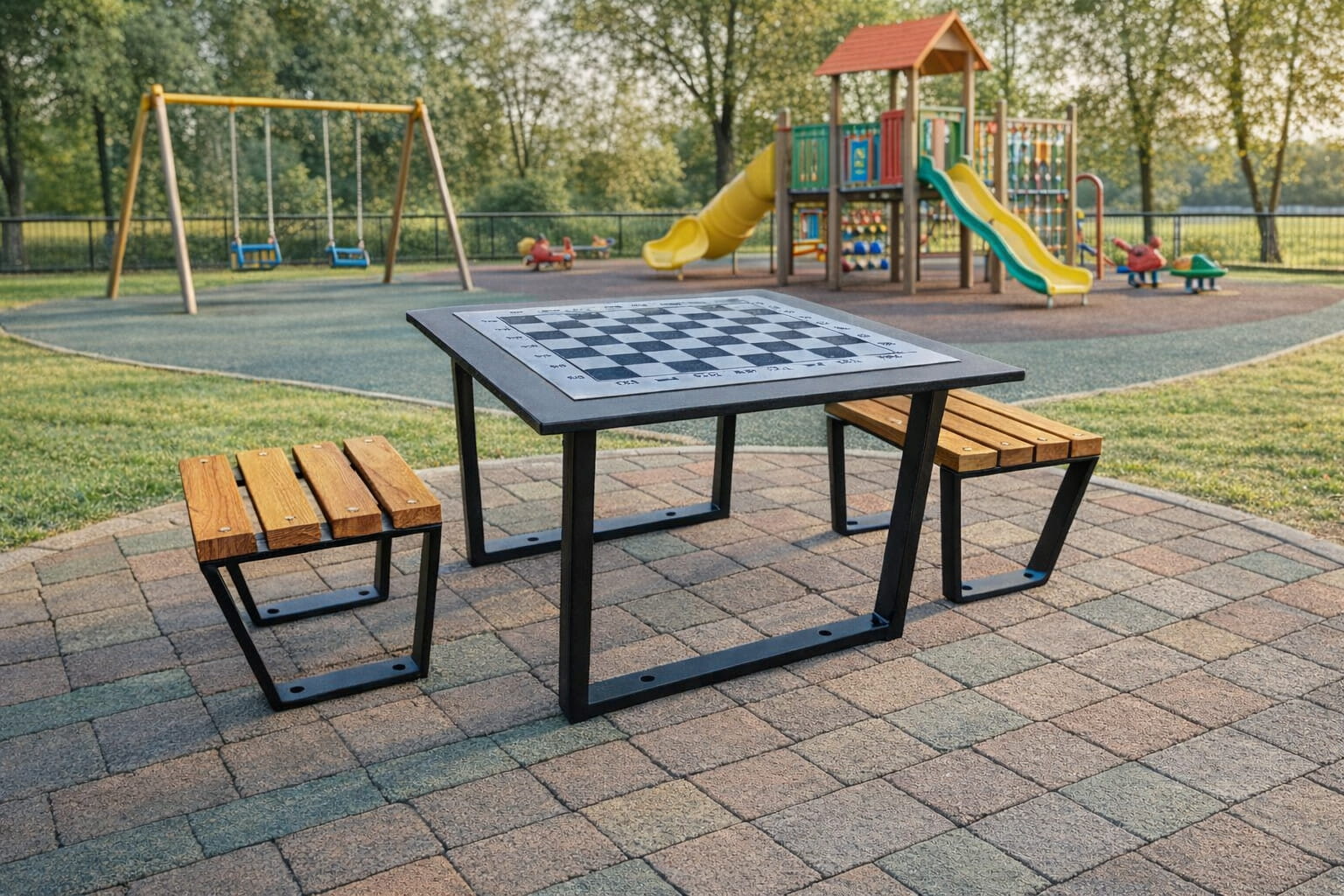 Elementy stalowe wykonane zostały z blachy i profili malowane proszkowo na kolor czarny lub inny z palety RAL.